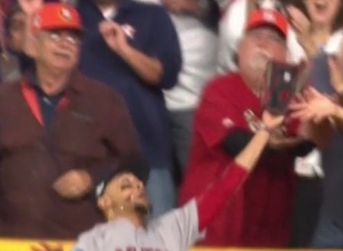 We can go into countless other details here, but there's really only one baseball question: Where does Betts' glove make contact with the fans' hands?